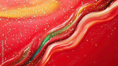Obraz premium Abstract swirling colors with glitter, resembling a cosmic or fluid landscape.