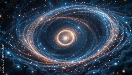 Obraz premium Abstract swirling cosmic nebula with glowing particles and bright stars creating a mesmerizing spiral galaxy effect