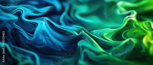 Fototapeta premium Abstract swirling fabric in blue and green tones, artistic background.