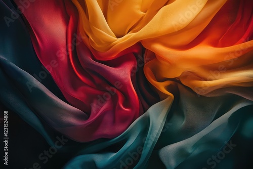© Ayan, Obraz premium Abstract swirling fabric sheets with soft gradient tones, creating a dynamic motion effect