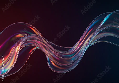 © Phung, Naklejka premium Abstract swirling light forms vibrant neon waves. AI Generated