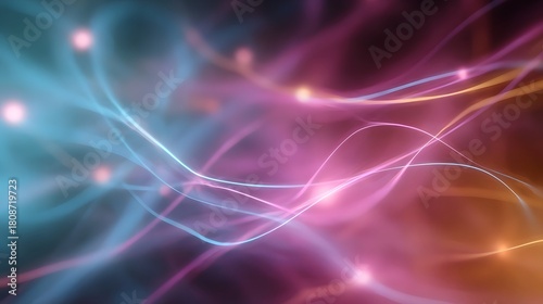 Fototapeta premium Abstract swirling light trails and glowing particles in vibrant colors representing energy and digital connection