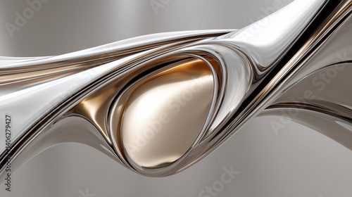 Obraz premium Abstract swirling metallic forms, gold and silver hues
