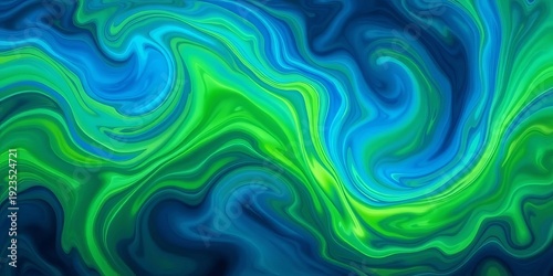 © Bamphen, Obraz premium Abstract swirling nebula-like forms in vibrant blues and greens, creating a dynamic wave pattern, style, dynamic