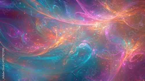 Fototapeta premium Abstract swirling nebula with vibrant colors and glowing particles.