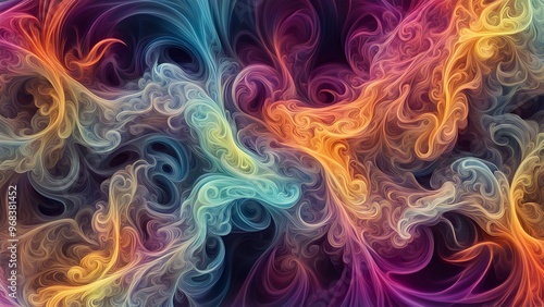 © Sutarto Stock, Obraz premium Abstract swirling pattern of colorful smoke on a dark background.