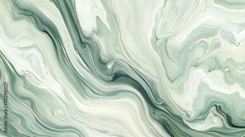 Obraz premium Abstract swirling patterns in soft green and white tones create a calming...
