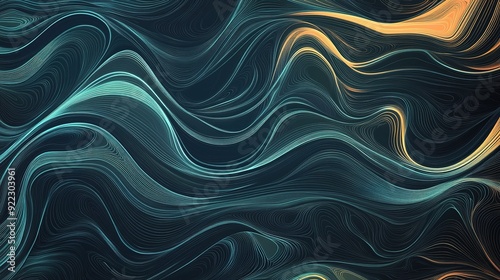 Obraz premium Abstract swirling patterns in vibrant blue, green, and gold against a dark...