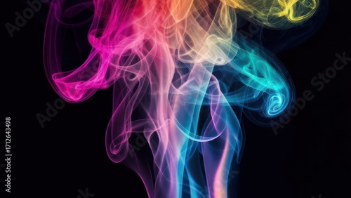 © sulastri, Fototapeta premium Abstract swirling rainbow smoke on black background
