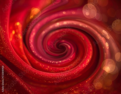 © shafira, Naklejka premium Abstract swirling red fabric with golden highlights