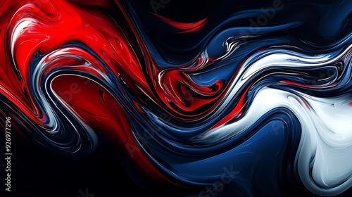© DIAHIMAGESNEW, Fototapeta premium Abstract swirling red, white and blue liquid with black background.