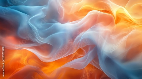 © heinng, Obraz premium Abstract swirling smoke blue orange vibrant colors. AI Generated