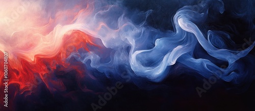 © Fana Art, Fototapeta premium Abstract Swirling Smoke in Red, Blue, and White with Black Background.