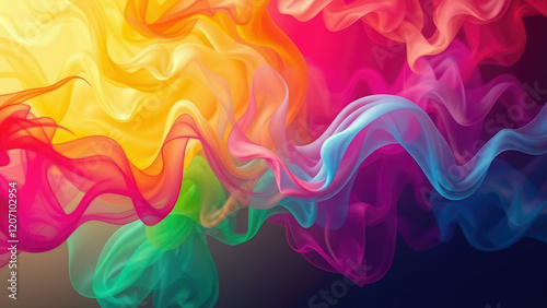 Fototapeta premium Abstract swirling smoke waves dynamic flow red yellow green blue colors,...