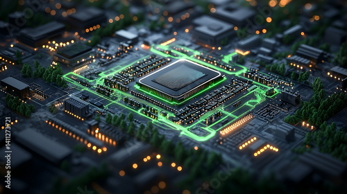© Michelle, Obraz premium Abstract swirling teal green texture background image