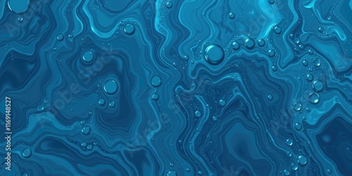© Akaligo Stock, Fototapeta premium Abstract Swirling Teal Liquid with Bubbles Background Texture