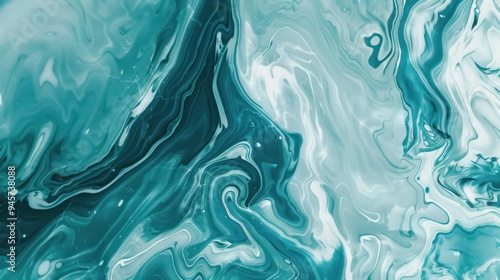 © @_ greta, Fototapeta premium Abstract Swirling Turquoise and White Paint