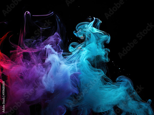 © darion, Obraz premium Abstract swirls of blue, purple and pink smoke against a black background.
