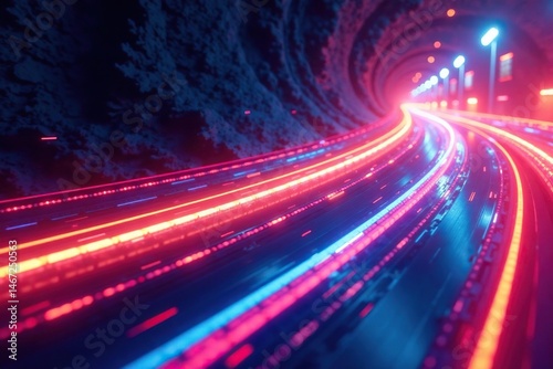 © Kraengkrai, Fototapeta premium Abstract swirls of color creating a vibrant, dynamic race track , velocity, fast, track