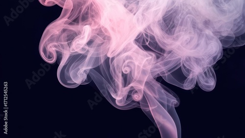 © sulastri, Fototapeta premium Abstract swirls of pink and white smoke against a dark background