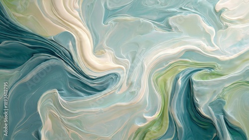 Obraz premium Abstract Swirls of Teal, White, and Green