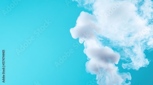 Naklejka premium Abstract swirls of white vapor against a vibrant turquoise background. A cloud-like effect