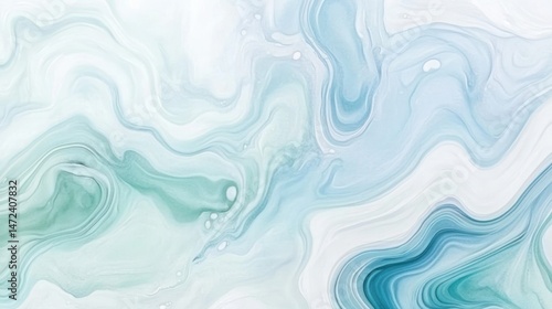 Fototapeta premium Abstract Swirls: Teal and White Liquid Marble Texture