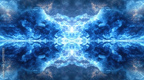 Fototapeta premium Abstract symmetrical cloud pattern with blue hues and reflective surface,...