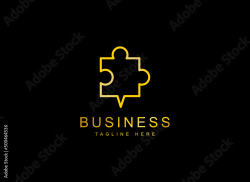 © Mbexasak, Fototapeta premium Abstract Talk Logo. Gold Geometric Shape Puzzle with Talk Icon Linear Style Isolated on Black Background. Usable for Business and Branding Logos. Flat Vector Design Template Element