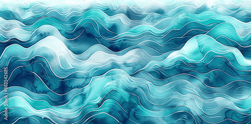 Obraz premium Abstract Teal and Aqua Watercolor Ocean Waves Pattern Seamless Texture for...