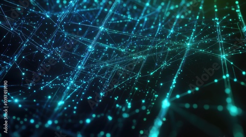 Obraz premium Abstract Teal and Blue Network Connections Futuristic Digital Background with Glowing Lines and Nodes