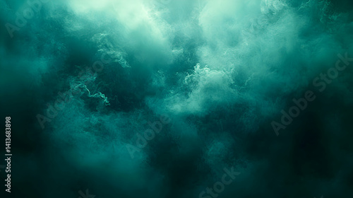 © Swaha, Fototapeta premium Abstract teal and dark green smoke or cloud formation, ideal for backgrounds, textures, or artistic projects. Evokes mystery and depth.