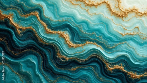 Obraz premium Abstract teal and gold liquid marble texture. Swirling pattern with luxurious...
