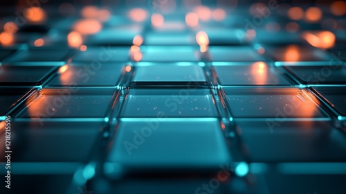 © addymawy, Obraz premium Abstract Teal and Orange Glass Cube Grid Pattern