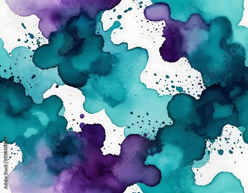 Obraz premium Abstract Teal and Purple Watercolor Splotches