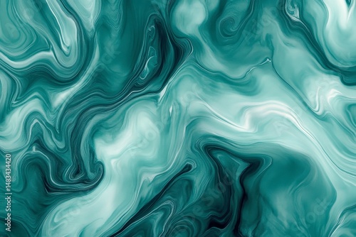 © amine, Obraz premium Abstract teal and white marble swirl pattern.