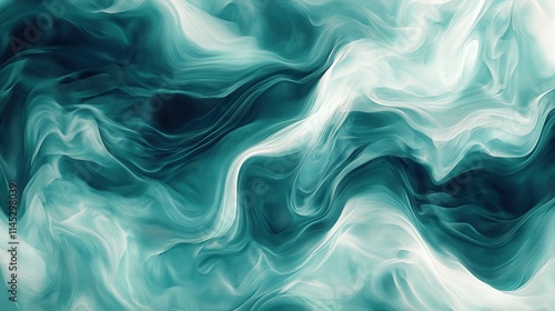 Obraz premium Abstract Teal and White Swirling Wave Pattern Design