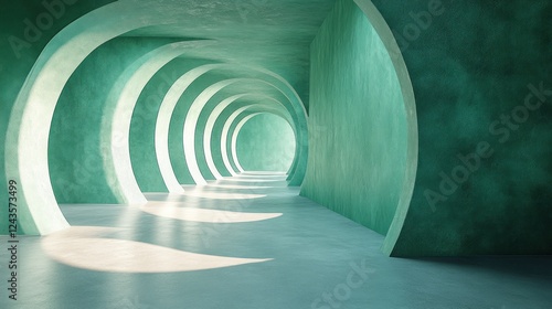 Obraz premium Abstract Teal Archway Corridor: A Serene Architectural Visualization