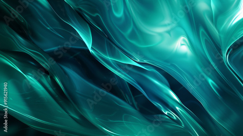© Yana Art and Design, Obraz premium Abstract Teal Background with Flowing Movement, Generative AI Illustration