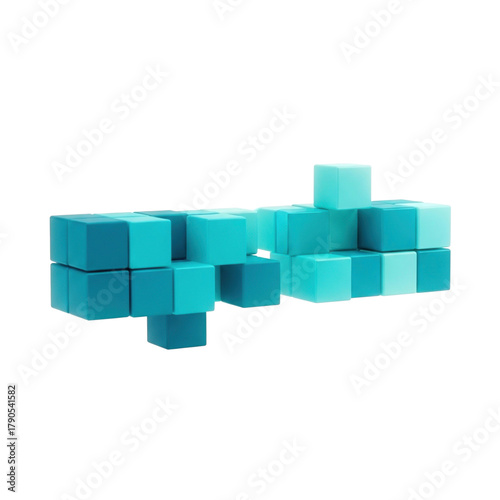 Obraz premium Abstract Teal Cubes Forming Dynamic Geometric Structure on White
