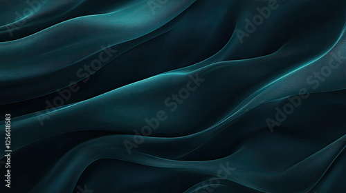 © Mahmud, Obraz premium Abstract Teal Fabric Waves Flowing Smoothly Dark Background Texture