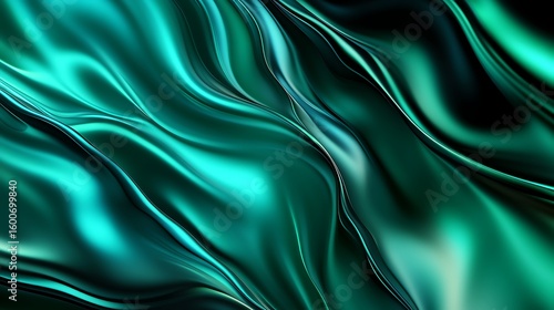 Obraz premium Abstract teal green flowing liquid background with metallic sheen, smooth waves and curves