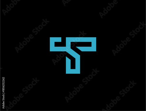 Fototapeta premium Abstract teal letter st logo on black