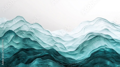 © isend, Obraz premium Abstract Teal Mountain Range Landscape: Serene Ink Wash Painting