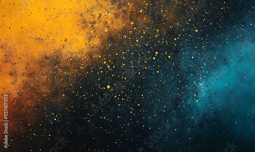 © Ripon, Fototapeta premium Abstract teal orange yellow black grainy color gradient background noise texture effect