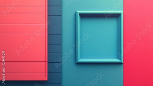 © CamBot, Fototapeta premium Abstract Teal, Red and Blue Minimalist Wall Art with Frame