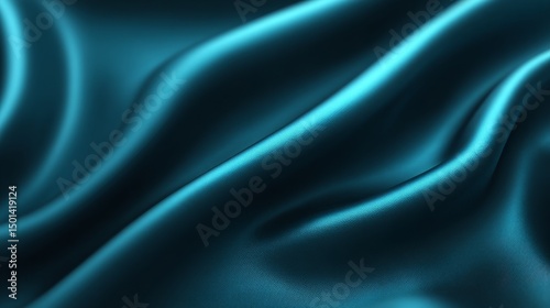 Fototapeta premium Abstract Teal Silk Drape - Smooth, flowing teal silk fabric; elegance, luxury, softness, fluidity, serenity. Symbolizing sophistication, calm, and premium quality