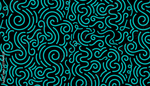 © Pro Creator, Fototapeta premium Abstract teal swirls and lines seamless pattern on black background