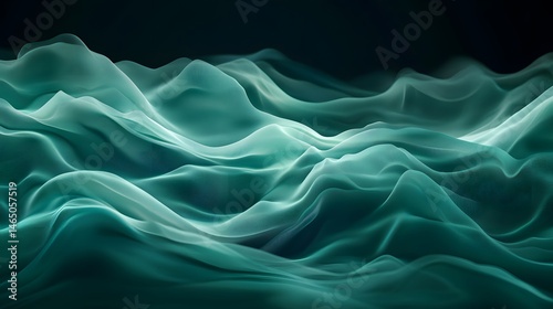© riskun, Obraz premium Abstract teal undulating forms in a dark background.