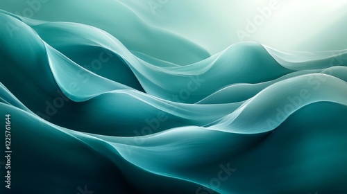 © Talha, Obraz premium Abstract Teal Wave Background Soft Flowing Elegant Design Digital Art Graphic Texture Sea Calm Cool